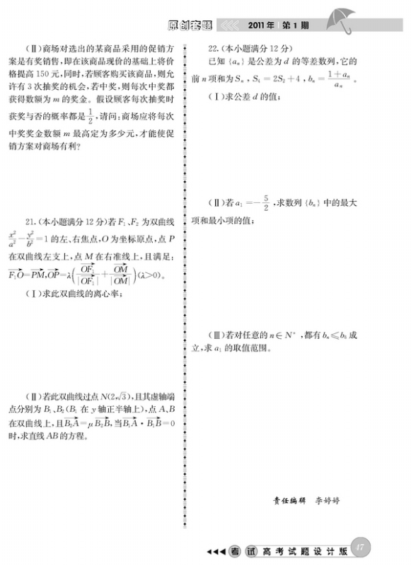 2011年高考数学模拟试题(全国卷)
