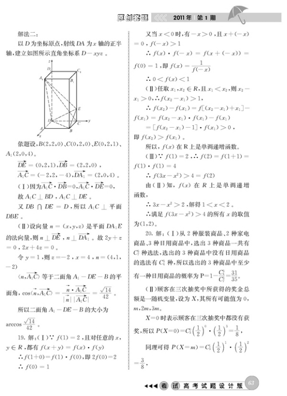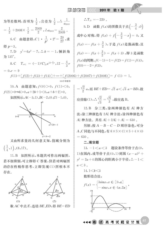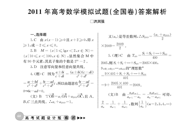 2011年高考数学模拟试题(全国卷)答案解析