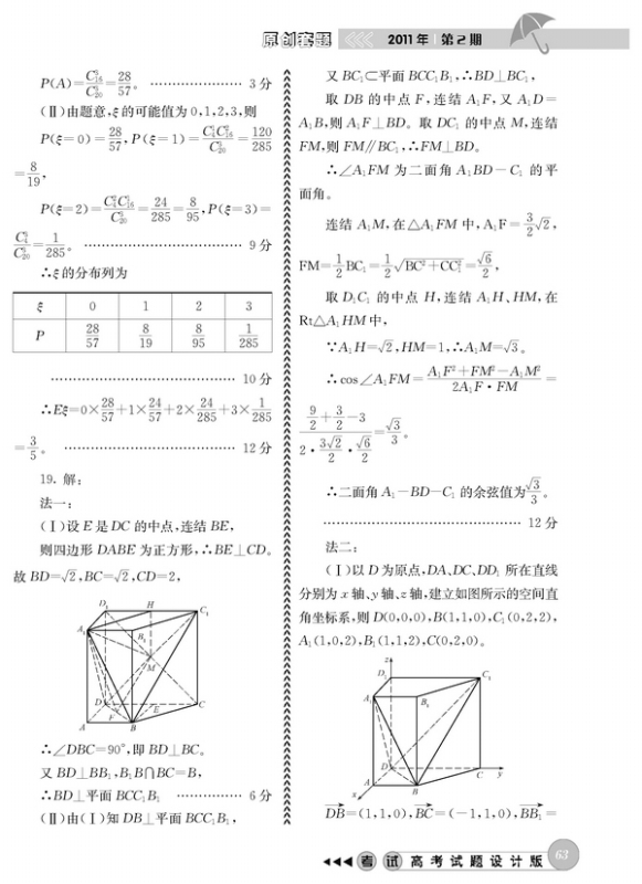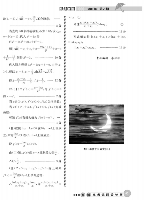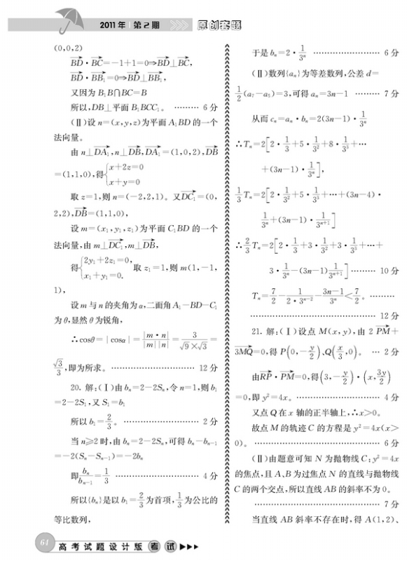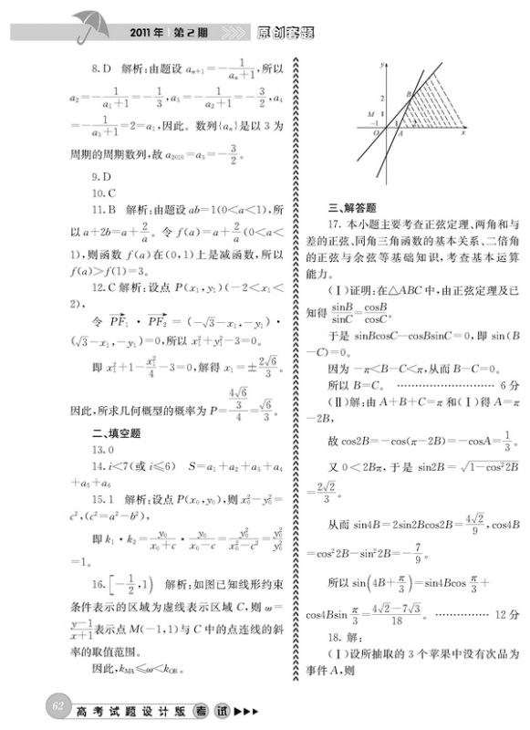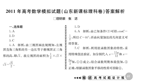 2011年高考数学模拟试题(山东新课标理科卷)答案解析