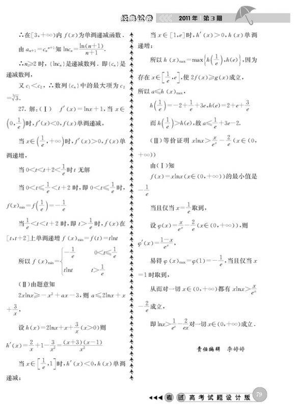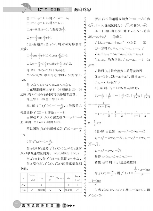 吉林省高考数学模拟试题精选(全国新课标卷)参考答案