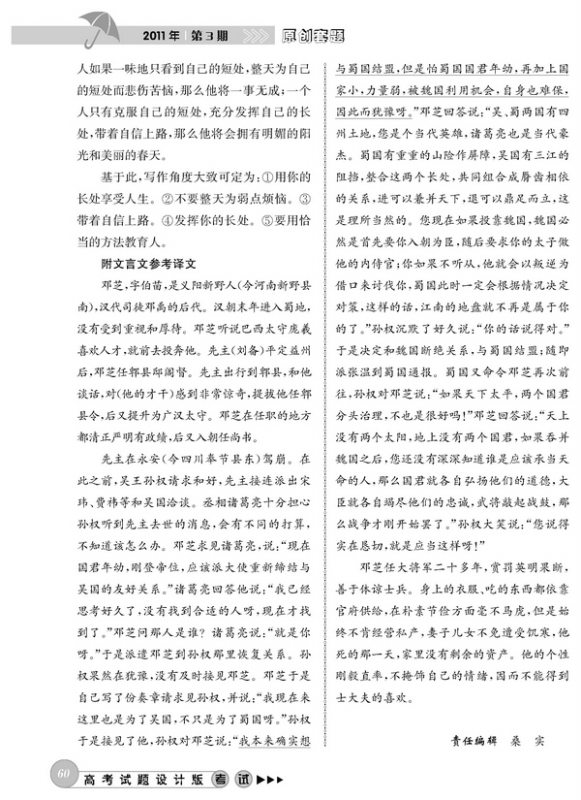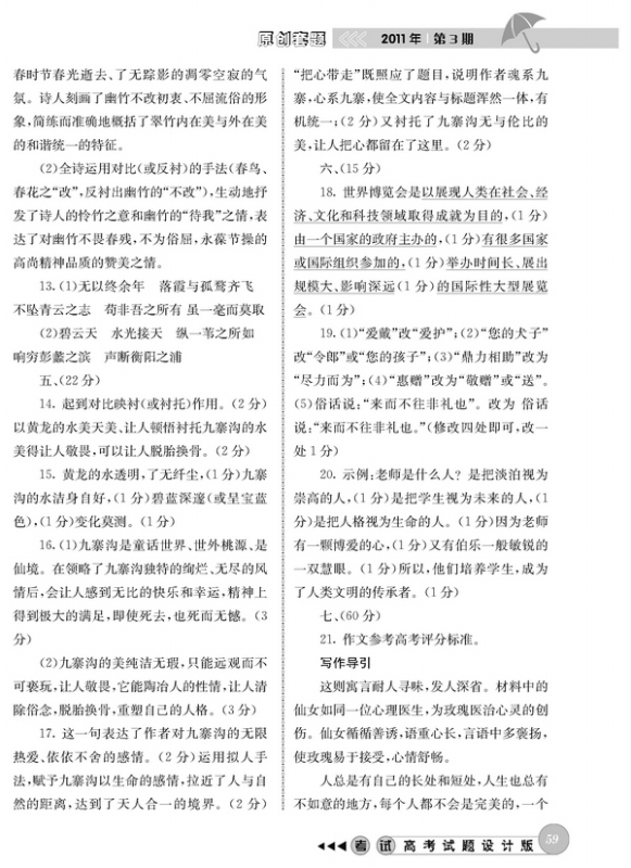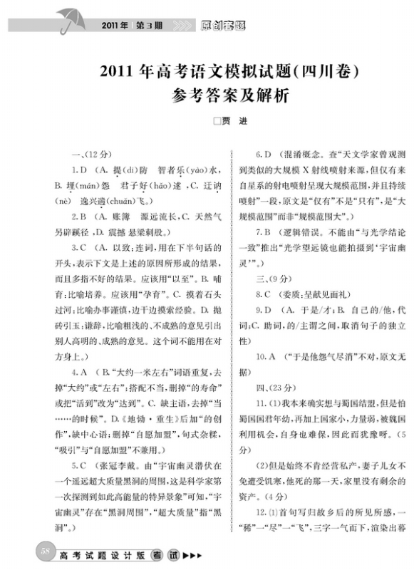 2011年高考语文模拟试题(四川卷)参考答案及解析