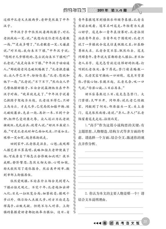 读小说《高手》完成练习