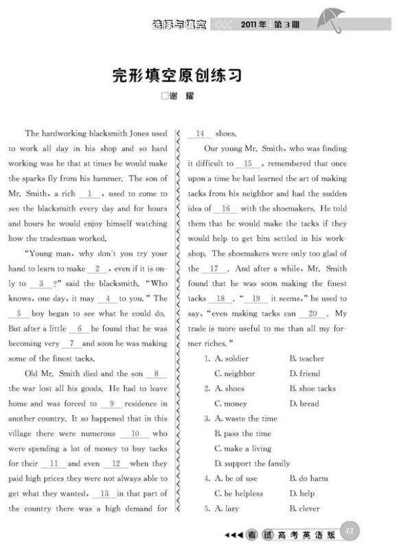 完形填空原创练习
