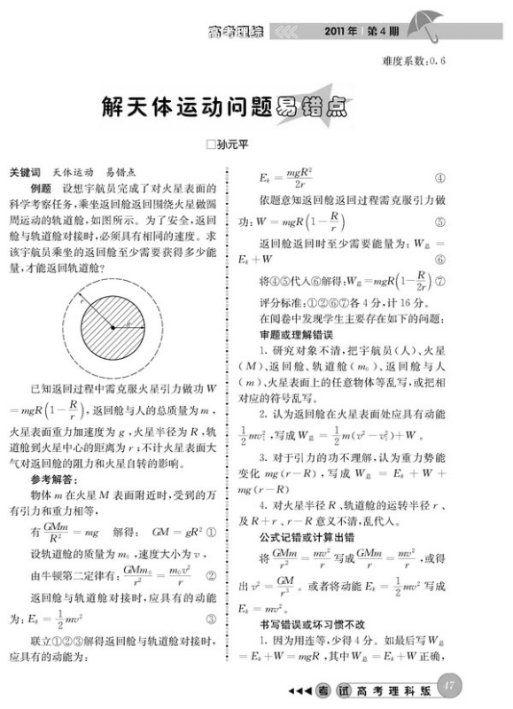 解天体运动问题易错点