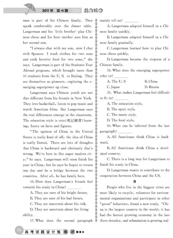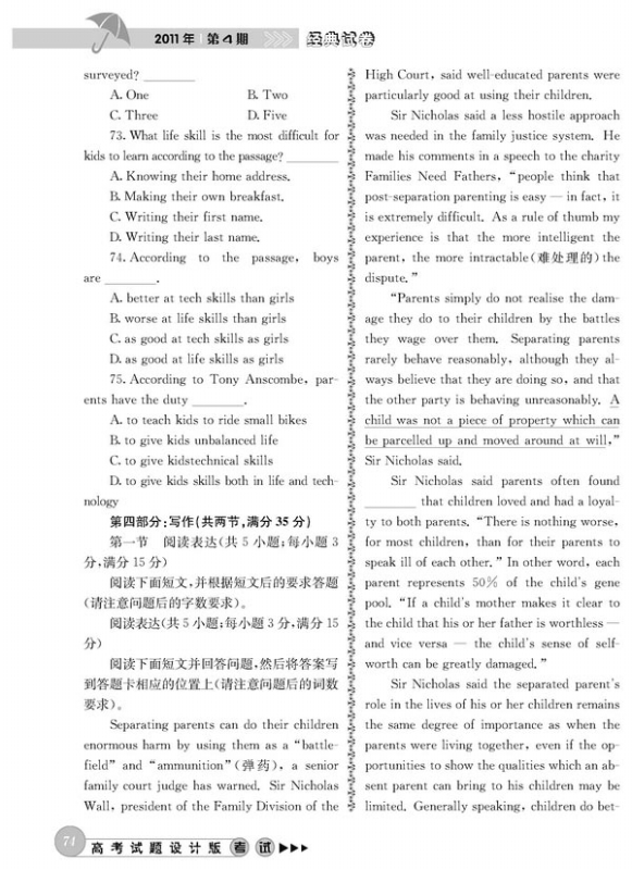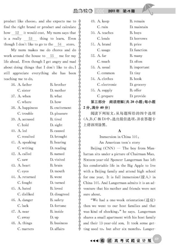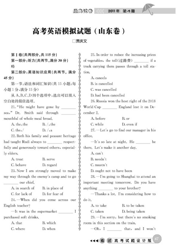 高考英语模拟试题(山东卷)