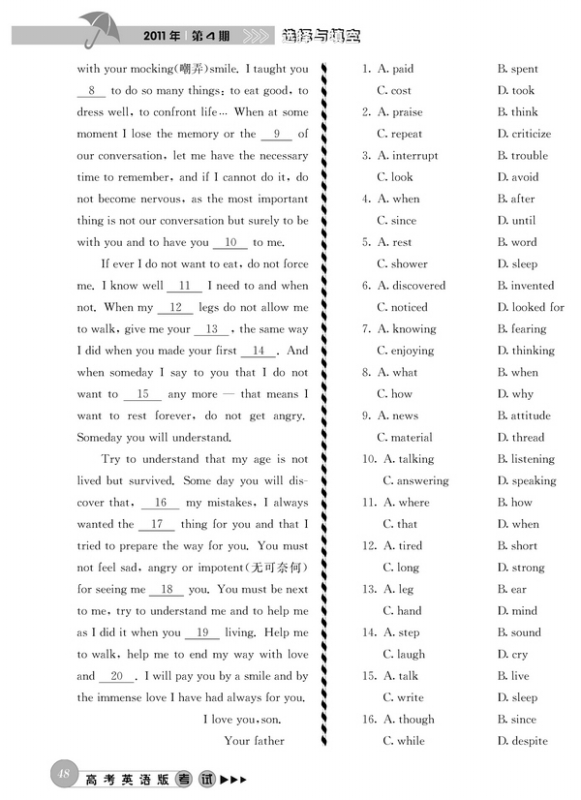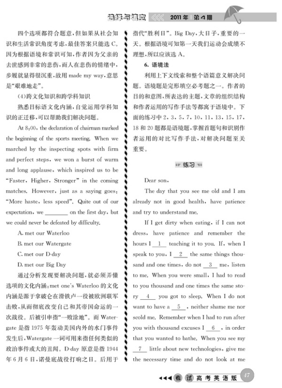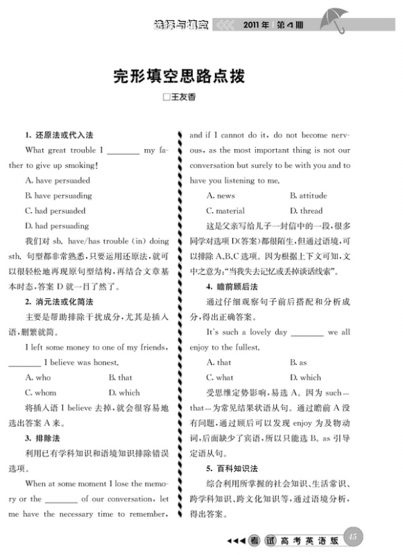 完形填空思路点拨