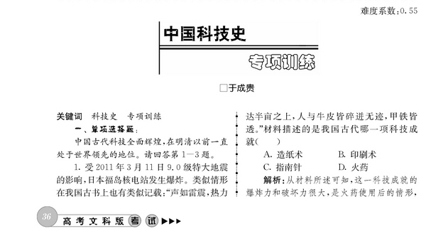 中国科技史专项训练