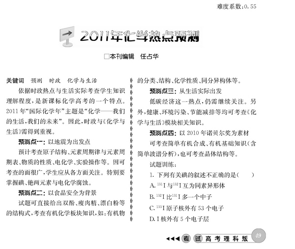 2011年化学热点预测