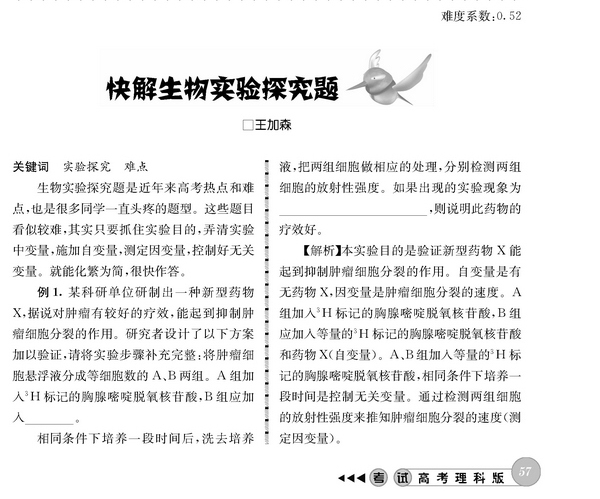 快解生物实验探究题