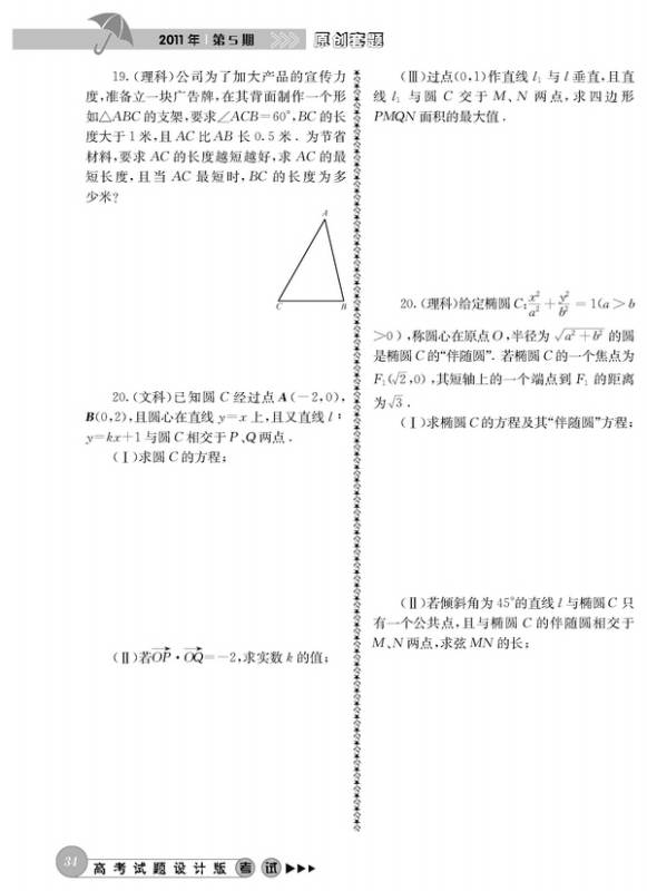 2011年高考数学模拟试题(全国卷)