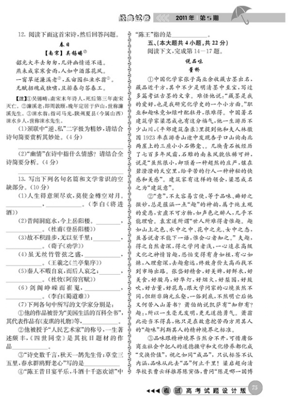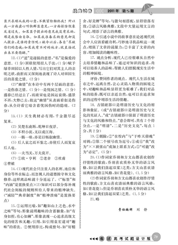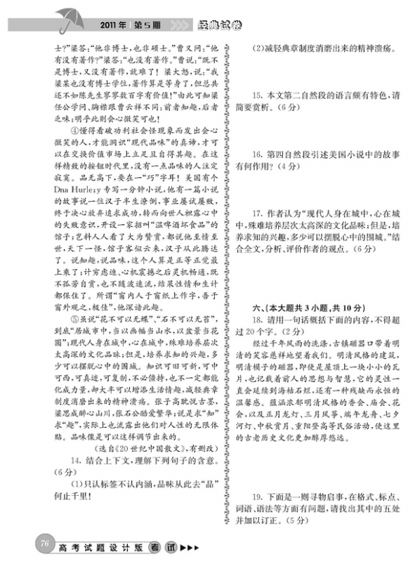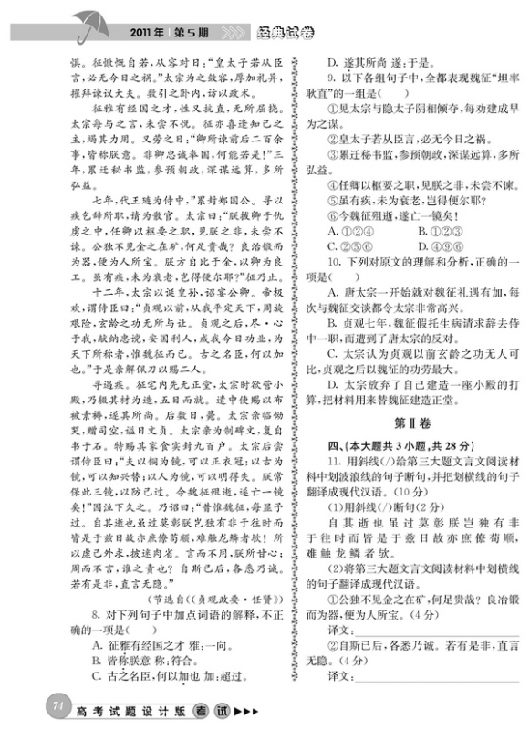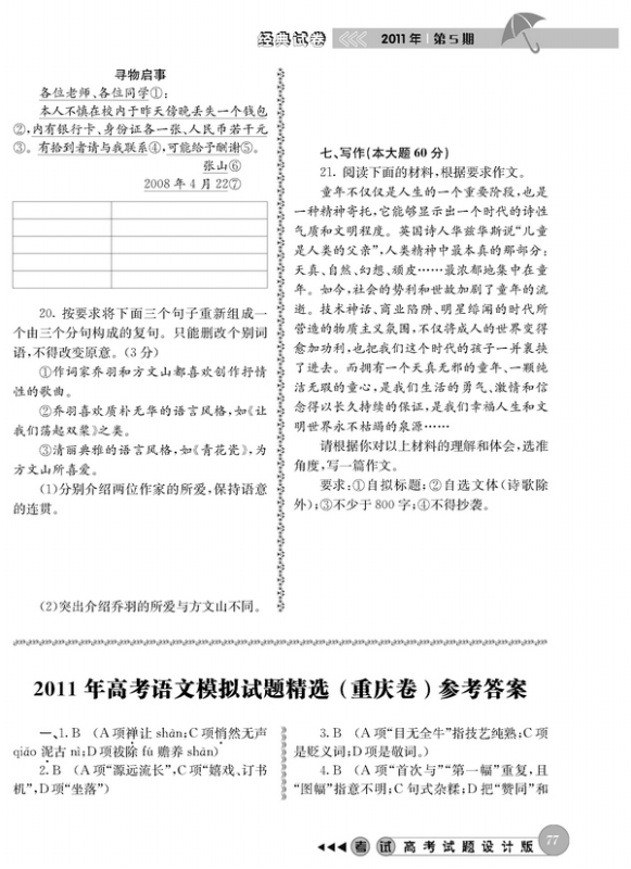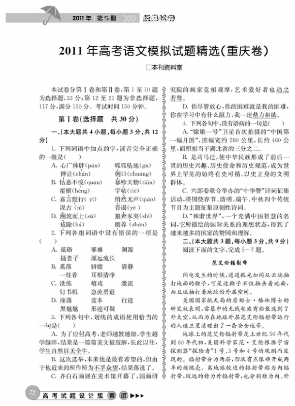 2011年高考语文模拟试题精选(重庆卷)