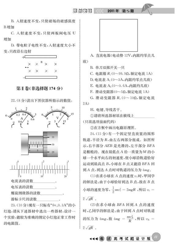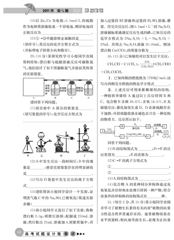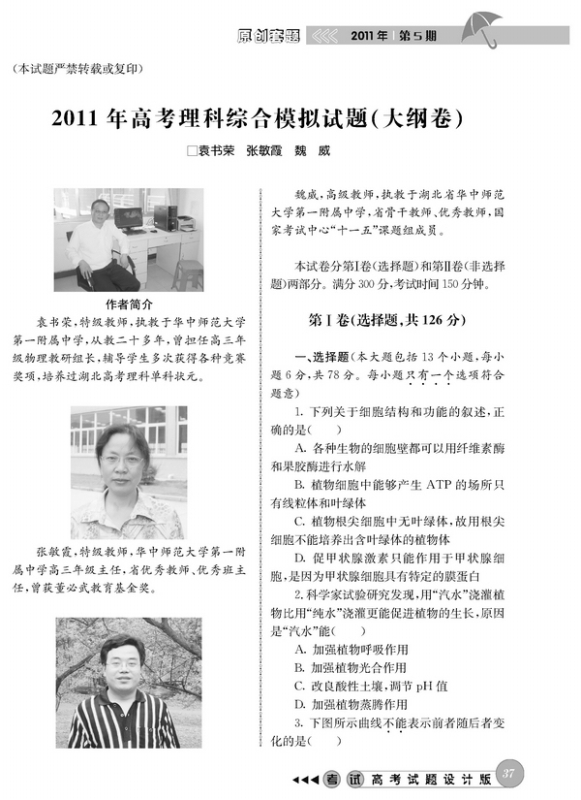 2011年高考理科综合模拟试题(大纲卷)
