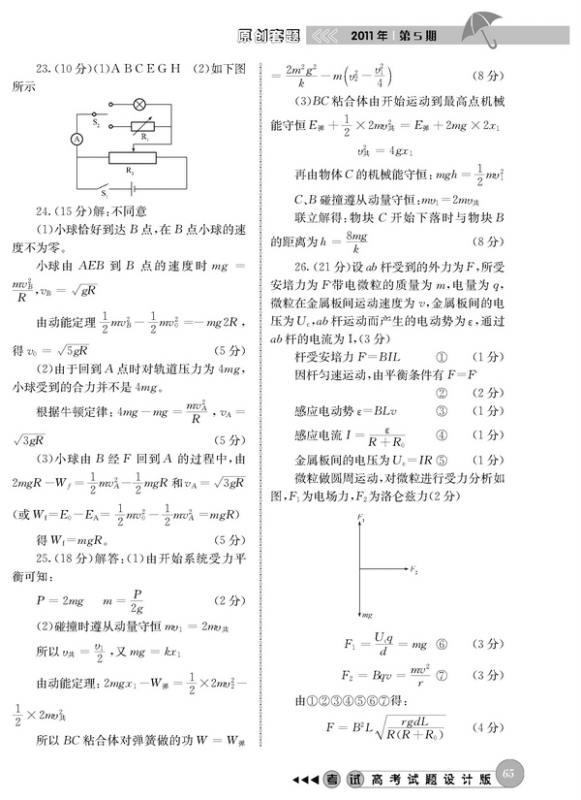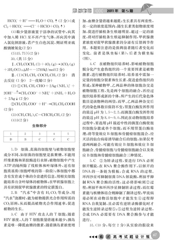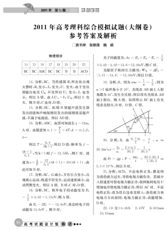 2011年高考理科综合模拟试题(大纲卷)参考答案及解析