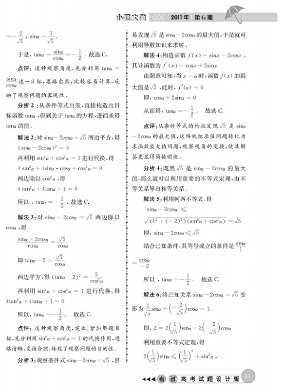 三角函数题多解