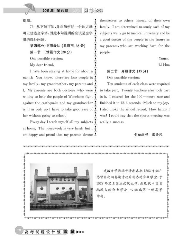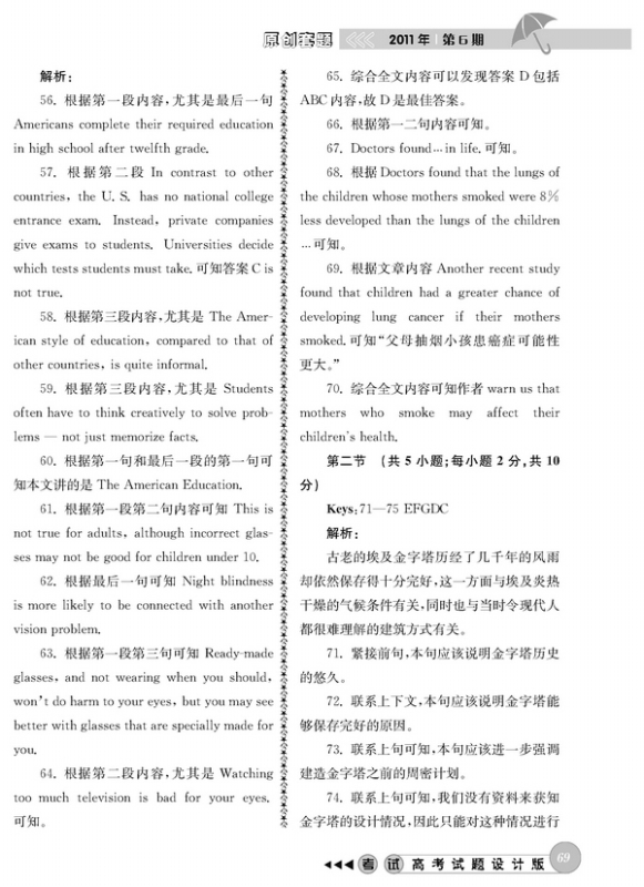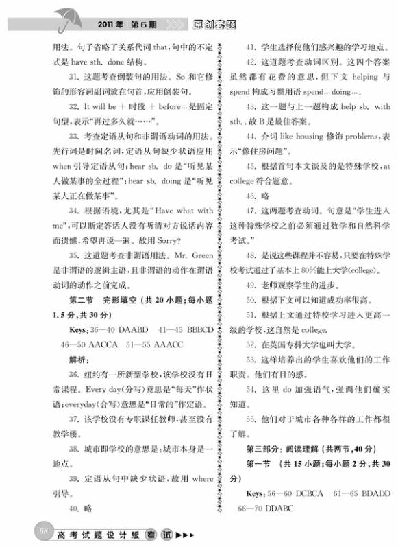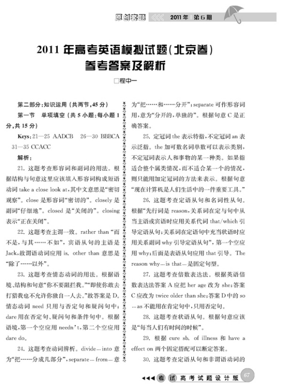2011年高考英语模拟试题(北京卷)参考答案及解析