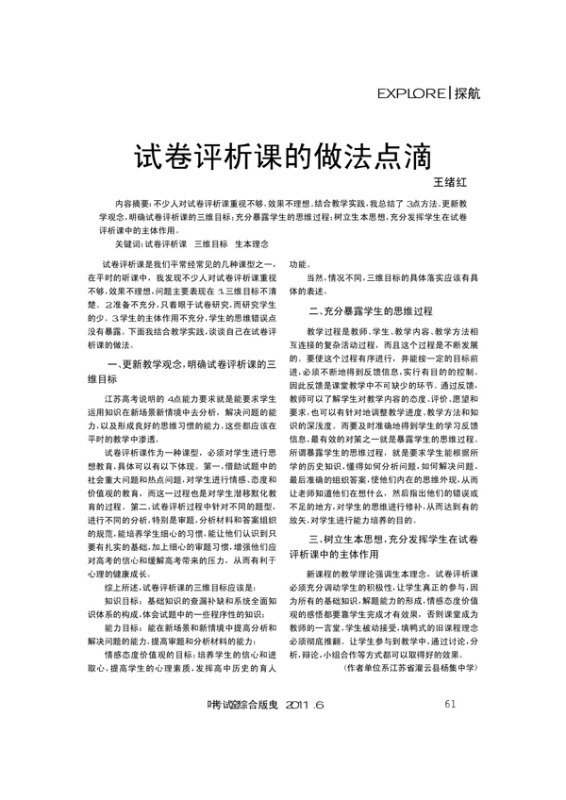 试卷评析课的做法点滴