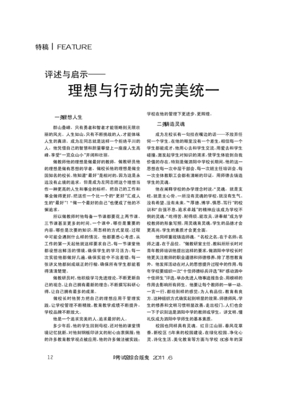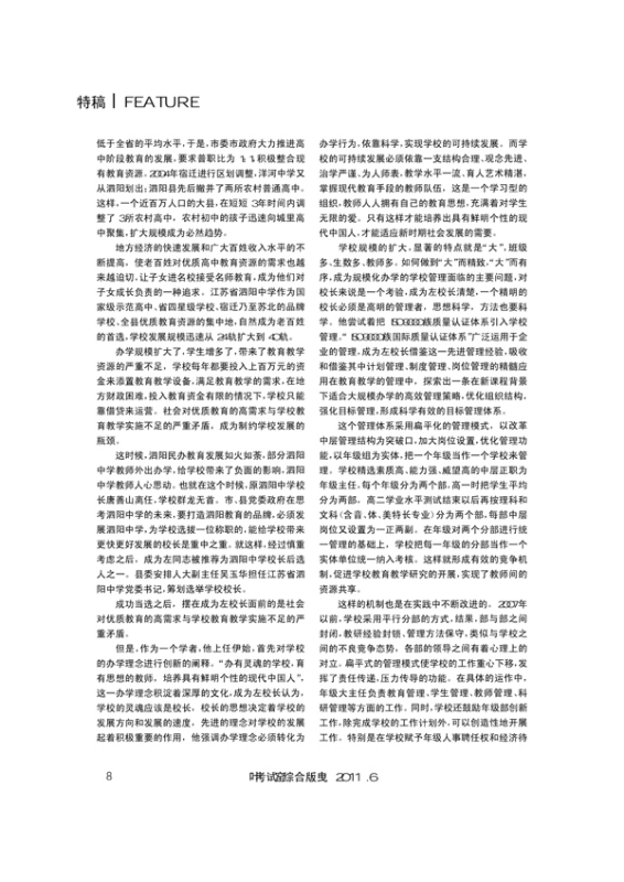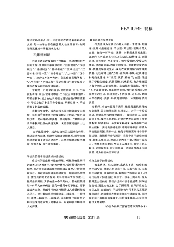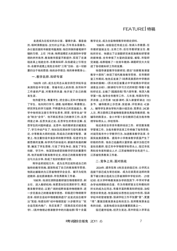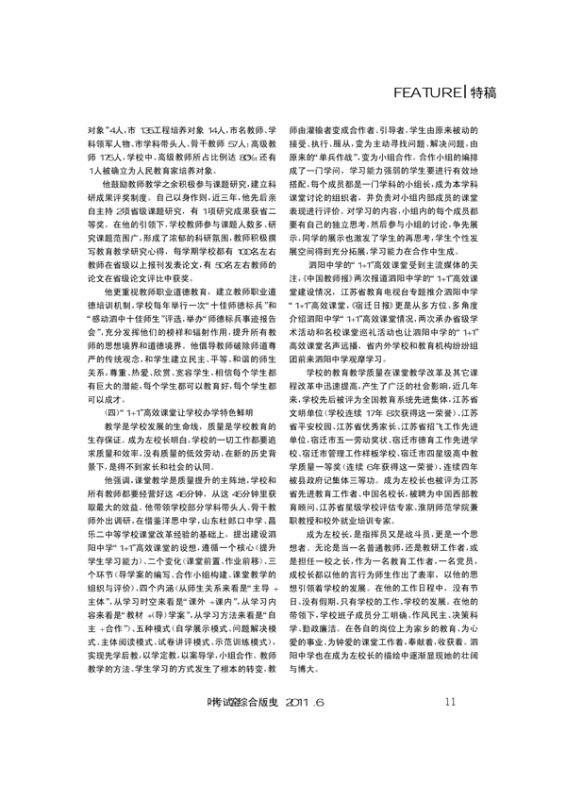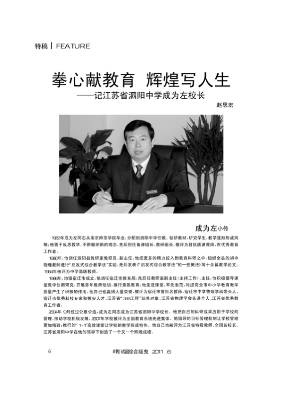 人物素描 拳心献教育 辉煌写人生——记江苏省泗阳中学成为左校长