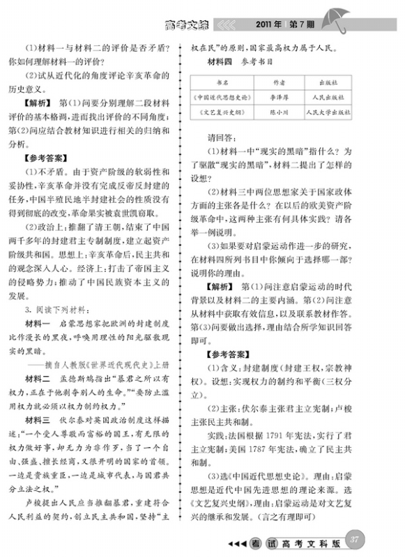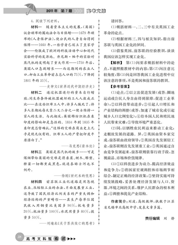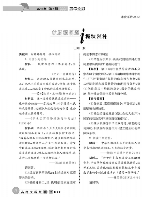 材料解析题模拟训练