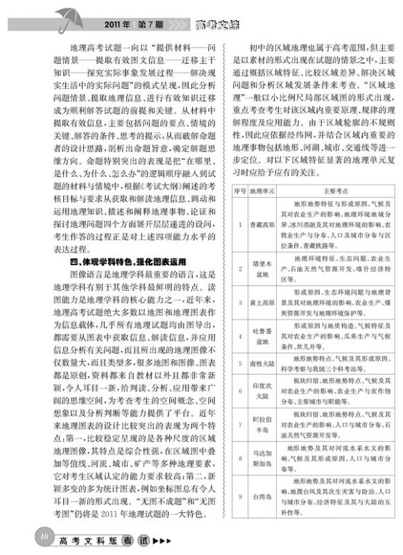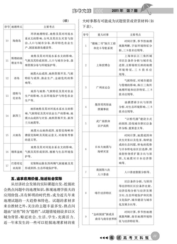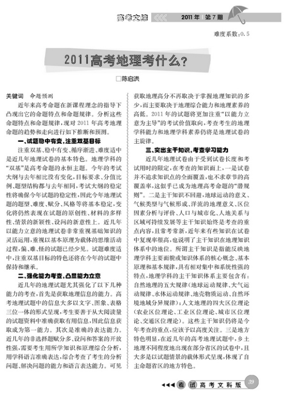 2011高考地理考什么?