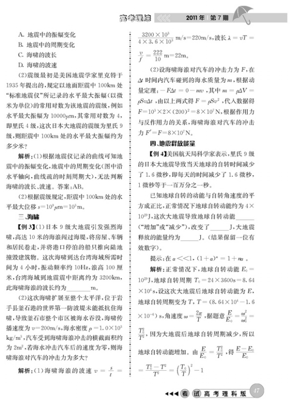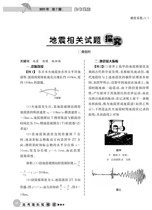 地震相关试题探究