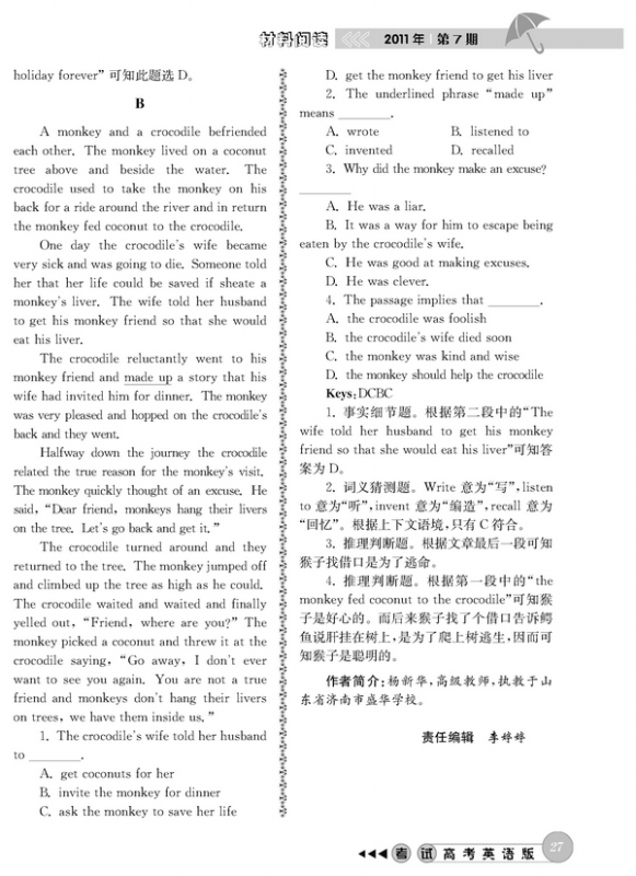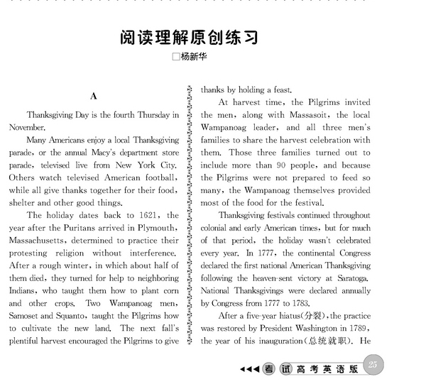 阅读理解原创练习