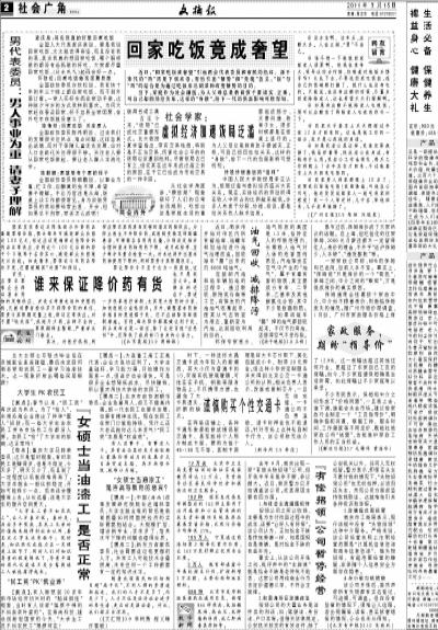 全国政协委员许钦松说,我有快十年的年三十晚上都在家吃饭,而不到外面订餐。一家人买好东西在家动手做,这种除夕守岁的方式我特别喜欢。为何大家赶在春运回家,好不容易全家团聚,在外吃年夜饭就没意义了。