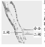 找穴位时握拳,将食指根部,突起的骨头,往食指方向就是二间,往手背处就是三间,两个穴都与合谷相汇合。这两个穴的作用也同于合谷。就像一条山脉的几个主峰一样,依次排开,治疗的疾病是一样的。