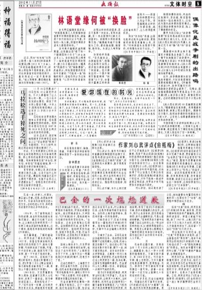 近日,网友“东东枪”从网上购得一套八本的《林语堂英译精品》集(2012年7月版),“买到后越看越觉得不对:封面上那脸绝不是林语堂。后来对比林语堂年轻时候的照片,基本判定这一定不是林语堂。”他上网搜索,最后确定是漳州作家杨骚(1900~1957)。