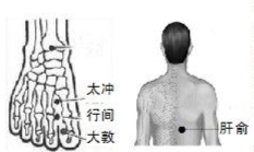 太冲穴:太冲穴位于第一、二跖骨结合部之前凹陷处。太冲穴相当于储存肝经元气的仓库,按摩此穴,能调动肝经元气,维持肝脏功能。