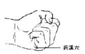 后溪穴,八脉交会穴(通于督脉)。取穴为微握拳,第五掌指关节后尺侧的远端掌横纹头赤白肉际。