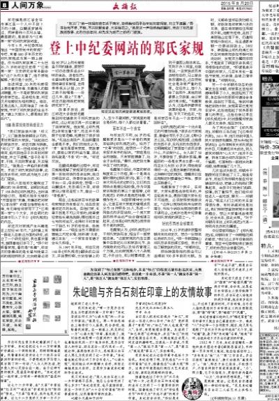 今年5月,中纪委网站推出“中国传统中的家规”专栏,有着600多年历史的郑氏家规成为第一期上榜者。作为郑氏家族第二十七世孙,71岁的郑定汉觉得“‘江南第一家’文史研究会常务副会长”这个头衔太重了,他不停地解释:“我只是个农民。”