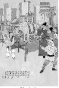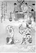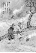 卖春联 塾中先生不甘贫,书写春联卖斯文。当众挥毫显身手,自夸笔力胜右军。