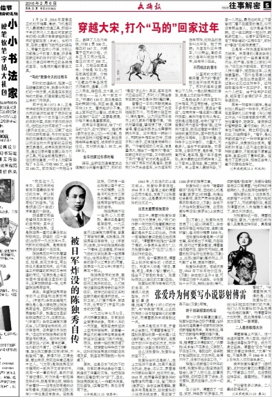 在《万象》上,张爱玲先后发表了《心经》《琉璃瓦》,杂志老板平襟亚与她约定,连载《连环套》,每月预付稿费1000元。