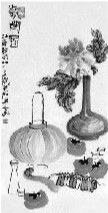 以上所提雅物相互组合再出现,实际又有了叠加的寓意,例如柏枝、柿子和如意构成了“百事如意”,花瓶中插三支戟象征着“平升三级”,爆竹、瓶子与鹌鹑则表示“竹报平安”等等。而将这些蕴含深意的雅物引入画中,不仅昭示了明清时期“岁朝图”的倾向,也使得“岁朝清供图”拥有了雅俗共赏的审美趣味。