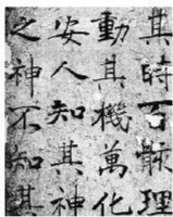 褚遂良晚年笔力愈沉而笔画愈细,表现在书体风貌上则是姿态更加流美,字形宽绰多变,章法布白也更接近于隶书的格调,字与字的间距宽,而行与行的间距窄,饶有新意,与众不同。