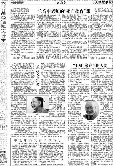 那一次,金雅琴和老伴牛星丽分别演出了《日出》《三块钱国币》以及《茶馆》《骆驼祥子》中的片段,现场可谓盛况空前。牛响铃说,“妈妈常说自己是个演员,离不开舞台,但是近些年由于身体不好,拍摄时间长或是在外地的戏,我一般都替她拒绝了。为此妈妈常说我坏,老不让她演戏。前些年人艺排《甲子园》时曾经希望她能出演,我怕在台上出危险就没有让她去,她知道后埋怨了我很久。近10年来,她参与了很多栏目的录制,一是安全,二是时间短,还能让她有一种可以面见观众的幸福感。我们全家由衷地感谢电视台,给老太太的晚年带来快乐和幸福。”