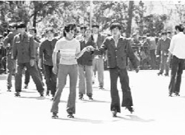 像喇叭裤这类时髦服装,有一个“冠冕堂皇”的称呼——“奇装异服”。喇叭裤和男生的长发、女生烫发一样,在我的中学年代(1979-1985),都属《学生守则》里禁止的。但城市里的男生,很难说谁会真没有一条喇叭裤,只不过大家都是在校外才穿,只有美昏头的家伙才会穿到学校去。而一旦发现,遭到拦截,接受批评的,被命令回家换裤子,转天不许再穿;态度不好,在校门口跟老师顶嘴的,喇叭裤则有可能陪着长头发一起,也挨上一两剪子。