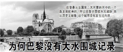 巴黎是从法国第二大河塞纳河中的一个岛发展起来的,所以巴黎亦面临水灾威胁,但从历史文献看,这个城市没有发生过内涝。