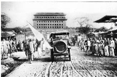 1907年6月10日一大早,五辆参赛车来到东交民巷的法国兵营集合,在京的外国人几乎都参加了出发仪式。看过《速度与激情》电影的朋友肯定会注意到,赛车比赛的发令员都是女性,1907年的这次拉力赛也是如此。法国使馆一等秘书的夫人高高举起发令旗后,赛车手们都出发了。