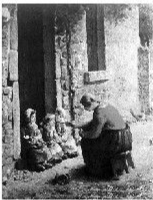 孩子们像往常一样,向房门口的石阶跑去,并习惯地在那里并排坐下,这情形真是太妙了。两个女孩位置的安排像是要保护最小的男孩,在右边的一个像做妈妈似地紧紧地抱着娃娃,另一个在左边与弟弟头挨着头。这情景是多么美啊!