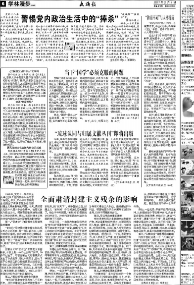 应当指出的是,上述六种比较突出的封建主义残余不是彼此孤立的,而是相互交织纠缠在一起。不仅如此,它们往往也同资本主义和各种非马克思主义思想相互渗透。因此,健全党内政治生活、净化党内政治生态,必须坚持系统治理,在全面肃清封建主义残余影响的同时,不能忽视对资产阶级腐朽思想和各种非马克思主义思想的批判。