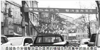 就在那一年,有个村率先召开村民代表大会讨论通过一项村规民约:除了红白喜事以外的其它酒席,属于滥办酒席,应该禁止。为公平起见,绥阳县其它村落、社区均按照这一规定订立标准。几天工夫,县里就制止了两三千桌“滥办酒席”。