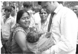 8月14日,印度一家公立医院因欠款被供应商中断氧气瓶供应,许多病重儿童只能用人工手动呼吸袋。在不到一周时间内,死亡儿童上升至79名。愤怒之火在印度舆论场燃烧,印度诺贝尔和平奖得主萨蒂亚尔希说:“这不是悲剧,而是屠杀。70年来的自由对我们的孩子就意味着这样吗?”(印度8月15日迎来脱离英国独立70周年。)图为一名婴儿在医院死亡后,亲人们失声痛哭。