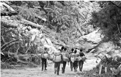漳扎镇附近的6位村民,前几天一直在山上采药,地震时在山上被困,他们迫切想要回家查看受灾情况。在九道拐,我们目睹他们飞快冲过塌方路段。