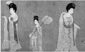 这幅画还有一个很有趣的现象,画家是根据画中人物的身份高低,决定其身型大小的。嫔妃的身份比较高,在画面中显得就比较大,身旁的宫女则画得比较小,这是中国古代人物画的一个很独特的现象,画中人物的身份尊卑决定了人物的大小高低。