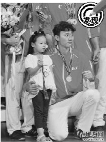 8月28日,全运会男子手球比赛结束,江苏队、山东队和北京队分获冠军、亚军和第三名。在颁奖仪式上,一些球员带着孩子共同登上领奖台,分享喜悦。北京队球员朱昕晨(前排右二)和女儿在颁奖仪式上合影。