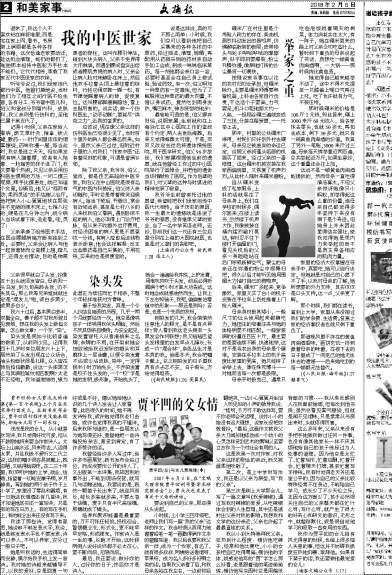 我从小到大特崇拜我父亲。狂热到什么程度:模仿他吃辣子,经常和他比赛吃,小小的女孩把自己吃得胃痛;模仿他的字体,就感觉他写的“贾”字怎么那么好看,老是跟着他的笔迹偷偷练;模仿他写东西时总是用稿纸背面的习惯……我从来反感别人在我面前抽烟,但每次到他书房,虽然总看见雾气缭绕,但就是闻不见烟味,只是常常从书房出来时,头就疼得厉害。