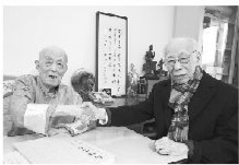 2008年10月28日,饶先生北上故宫办展。饶先生在展览间隙前往探望在北京301医院住院多时的老朋友季羡林先生。饶公的家人回忆:“他们一见面就亲切握手,季老称赞饶公‘多才多艺’,又称赞他的手‘很有力’。饶公闻听此言甚为高兴,说这是他长期写字、弹古琴的结果。季老的记性好,他谈起了饶公1991年在北京办展览的往事,说他和李嘉诚两人都参加了。饶公也提到他的《清晖集》是季先生作的序。谈笑甚欢时,饶公将事先写好的一幅字‘崧高维岳’赠与季老,称赞‘季先生是我们国家唯一的’。两位老人见面时间不长,语言不多,内心愉悦,依依不舍。”