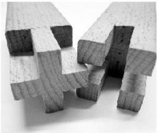 榫卯结构运用到家具上,最早可以追溯至春秋战国时期。相传鲁班为了测试自己的儿子是否聪明,发明了名为“鲁班锁”的智力玩具,那正是利用榫卯结构拼插而成的小型应用。三组共六根木条垂直相交,不用钉子和绳子,仅利用木器内部的凹凸部分啮合、连接、支撑,其间展现了一种看似简单却不平凡的智慧。出自《楚辞》的“方枘圆凿”,说的也是榫卯。其中,“枘”指用木料制作器具时削成的榫头,“凿”指凿成的卯眼,与榫头相对应,枘和凿必须严丝合缝才能妥帖拼接。当时,银锭榫、燕尾榫、凹凸榫等都已在家具上展开合理应用。