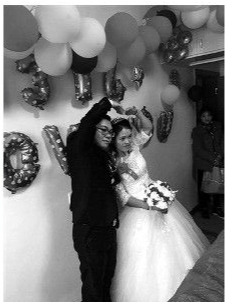 白延平1米6出头儿,钱仁凤1米5。婚礼上,她踩上10厘米高的婚鞋,两人一样高。司仪要求他喊几个平时的称呼,才能带走新娘。他喊了“仁凤、老婆、亲爱的”,直到最后喊了“小凤”,“她才跟我走”。